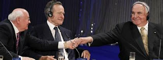 De som tittat på nyheterna i helgen har nog inte kunnat missat det firande som skett i Friedrichstadshallen i Berlin sista oktober. Nästa måndag, den nionde november så är det nämligen exakt 20 år sedan Berlinmuren föll. Med anledning av detta så kom man att genomföra detta firande i helgen. Närvarande var tre individer som gjorde händelsen för 20 år sedan möjlig. Nämligen Sovjets föredetta ledare Michail Gorbatjov, Usa:s föredetta president George Bush dä och Tysklands föredetta rikskansler Helmut Kohl.